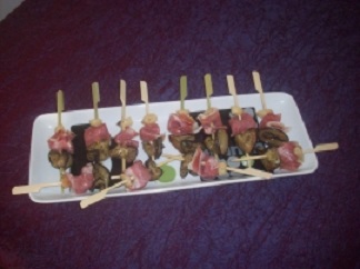 | BROCHETTES APÉRITIVES AU JAMBON ET AUX AUBERGINES | Préparation : 20 min Cuisson : 35 min |