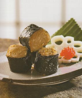 | Préparation : Couper le thon en 12 cubes. Mettre l`huile de sésame dans une terrine peu profonde ou une assiette, et les graines de sésame dans une autre terrine. Passer les cubes de thon dans l`huile puis dans les graines de sésame. Étaler les feuilles de nori. Envelopper chaque cube de thon dans une feuille de nori et couper la feuille de sorte que les bords puissent se chevaucher. Mouiller légèrement le bord de la feuille de nori de façon à la sceller. Dans une grande poêle, chauffer l`huile à feu vif, ajouter les rouleaux, côté thon vers le bas, et cuire 2 minutes. Retourner les rouleaux. Les graines de sésame doivent dorer sans brunir et le thon doit être juste cuit à l`extérieur et presque cru au centre. Cuire plus longtemps selon son goût et servir chaud ou tiède. |