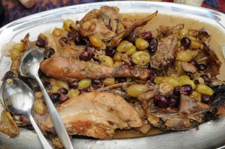 | Préparation : Salez, poivrez la volaille et colorez les morceaux dans l`huile d`olive chaude, côté peau en premier. Bien colorer, baissez le feu, ajoutez l’ail en chemise et 2 échalotes, coupées en 2 dans la longueur. Débarrassez la viande sur une assiette, réservez. Jetez l’excédent de gras. Remettre la sauteuse sur feu vif puis déglacez avec le vin blanc sec. Grattez à l’aide d’une spatule en bois le fond de la sauteuse pour récupérer les sucs et laissez réduire 2 minutes à feu modéré. Remettre les morceaux de pintade dans la sauteuse et ajouter les grains de raisins. Couvrir et laisser mijotez 4 à 5 minutes sur feu doux. Servir et déguster sans attendre. |