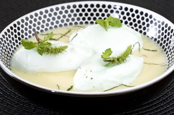 | Préparation : Pour la crème Porter le lait à ébullition avec la menthe fraîche. Blanchir les jaunes avec le sucre. Verser le lait sur les jaunes puis remettre à chauffer en remuant régulièrement jusqu`à 84°C (la crème doit napper la cuillère). Verser dans un récipient et laisser refroidir au réfrigérateur. Pour les blancs Préparez les blancs en neige : battez les blancs d`oeufs en neige avec une pincée de sel. Lorsqu`ils sont fermes, incorporez petit à petit le sucre sans cesser de battre. Faites-les cuire environ 40 secondes au four à micro-ondes à la puissance la plus basse. Ils peuvent aussi être cuits dans une grande casserole d`eau frémissante. Servir les meringues sur la crème anglaise rafraîchie et décorer d`une feuille de menthe. |