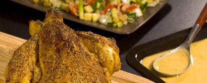 pour 6 personne(s) - 1 poulet entier - 3 c à soupe de Moutarde Fine et Forte - Herbes de Provence |