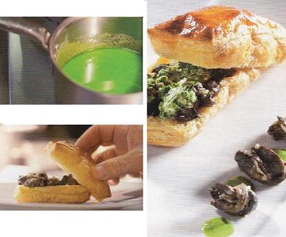 | FEUILLETÉ D`ESCARGOTS, COULIS DE PERSIL PLAT | Préparation : 15 min Cuisson : 40 min |