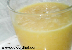 | Préparation : Épluchez l`ananas et coupez-le en morceaux. Épluchez le gingembre et émincez-le grossièrement. Pressez l`orange afin d`en récupérer le jus. Mixez le jus d`oranges avec l`ananas et le gingembre. Buvez bien frais. |