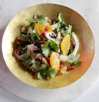 | Préparation : Détacher les clémentines en quartiers et retirer la peau blanche. Faire frire 2 minutes dans l’huile d’olive le piment coupé en lamelles après avoir éliminé les graines. Nettoyer le fenouil et les radis, les émincer, les mettre dans un saladier avec les graines de grenade. Passer l’oignon pelé sur une mandoline au-dessus du saladier, y mettre les quartiers de clémentine et la coriandre effeuillée. Verser le jus du citron dans le saladier, tourner, ajouter les lamelles de piment avec l’huile, mélanger. |