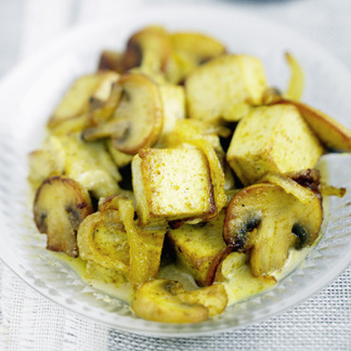 | TOFU AU CURRY ET AUX CHAMPIGNONS | Préparation : 20 min Cuisson : 15 min |