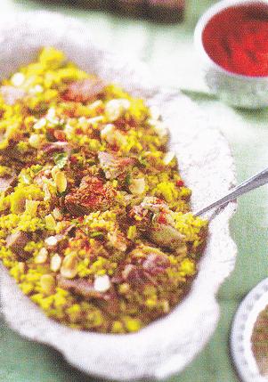 | Préparation : 1 Chauffer l`huile dans une cocotte. Colorer les amandes et les réserver sur un papier absorbant. 2 Dans la même cocotte et la même huile, colorer les morceaux de viande de tous les côtés à feu vif. Ajouter la cannelle, le cumin, l`anis étoilé, le curcuma et le curry. Mélanger et colorer 5 ou 6 minutes à feu vif en remuant. Verser 2 litres d`eau. Saler, poivrer, couvrir et laisser mijoter 3 heures à feu doux. 3 Réserver la viande et filtrer le bouillon. 4 Mettre le riz dans La cocotte. Versez 3 fois et 1/2 son volume de bouillon. Porter à ébullition. Couvrir et cuire 30 minutes à feu très doux en remuant de temps en temps. 5 Laver et ciseler finement La coriandre. 6 Remettre la viande dans la cocotte. Ajouter les amandes, le paprika et la coriandre. Mélanger et servir. |