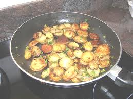 | Préparation : 1.Préparons l`ail... Appuyer sur la racine de chaque gousse sur la planche, avant d`éplucher. La tige intérieure doit être enlevée appelée germe, elle est indigeste. 2.Eminçons l`ail... Placer la gousse côté plat, pratiquer deux ou trois entailles et émincer selon la taille désirée. 3.Occupons-nous des pommes de terre... Pour éplucher, utiliser un couteau économe, plonger aussitôt dans l`eau, car elle noircit à l`air, ni trop longtemps dans l`eau, car elle durcit. Couper en dés. Laver pour retirer l`amidon, sécher. Réserver. 4.Commençons la cuisson... Verser l`huile d`olive, elle doit être fumante. Ajouter les pommes de terre pour les saisir, ne surchargez pas, car vous auriez des difficultés pour les tourner, régler votre puissance de chauffe. 5.Faisons sauter les pommes de terre de temps en temps... Ou retournez-les délicatement. Laisser prendre coloration. 6.Nous terminons... Vers la fin de cuisson, saler, poivrer, ajouter l`ail, persil, basilic. Mélanger cuire une minute ou deux et réserver au chaud |